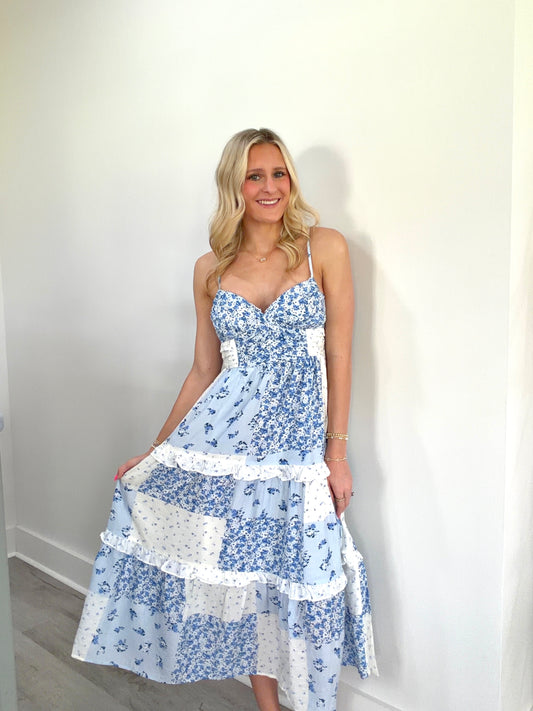 Brynlee Blue Pattern Midi Dress